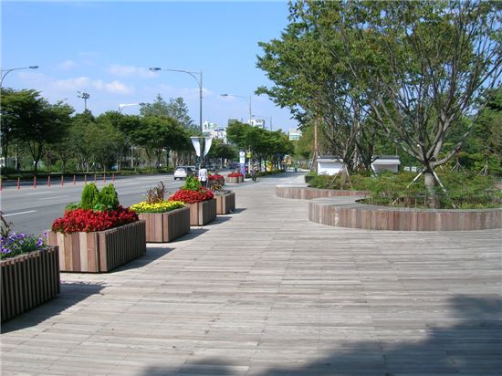 이들 공사가 마치면 녹지대 조성과 화강석으로 탄석 포장, 우레탄 보행길 조성 등 공사가 진행된다.