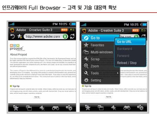 인프라웨어는 지난해 7월부터 삼성전자와 LG전자를 통해 해외 수출을 시작했고 올 9월부터 노키아 CDMA용 브라우저 수출이 시작돼 이익 가시성이 추가로 확대됐다.