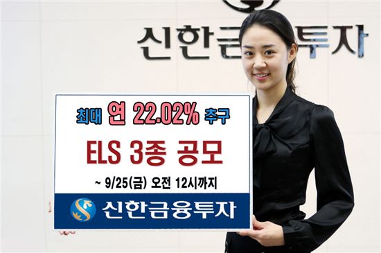 신한금융투자(www.goodi.com, 사장 이휴원)는 22~25일 4일간 최고 연 16.02%~22.02% 수익을 추구하는 2년 만기 원금비보장형 ELS 3종을 공모한다.
