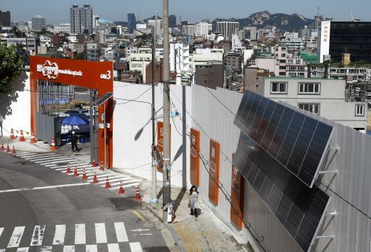 $pos="C";$title="";$txt="▲ 대림산업이 업계 최초로 '신당 e-편한세상' 현장 펜스에 태양광 발전 시스템, 풍력발전 시스템, 태양광 가로등과 같은 친환경, 저에너지 설비를 설치해 운용하고 있다. ";$size="520,353,0";$no="2009092113030729016_1.jpg";@include $libDir . "/image_check.php";?>
