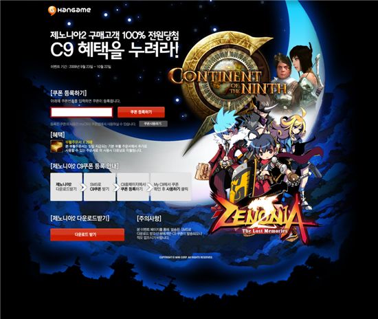 이번 프로모션에 대한 자세한 내용은 게임빌 홈페이지(www.gamevil.com)와 'C9' 홈페이지(c9.hangame.com)에서 확인할 수 있다.