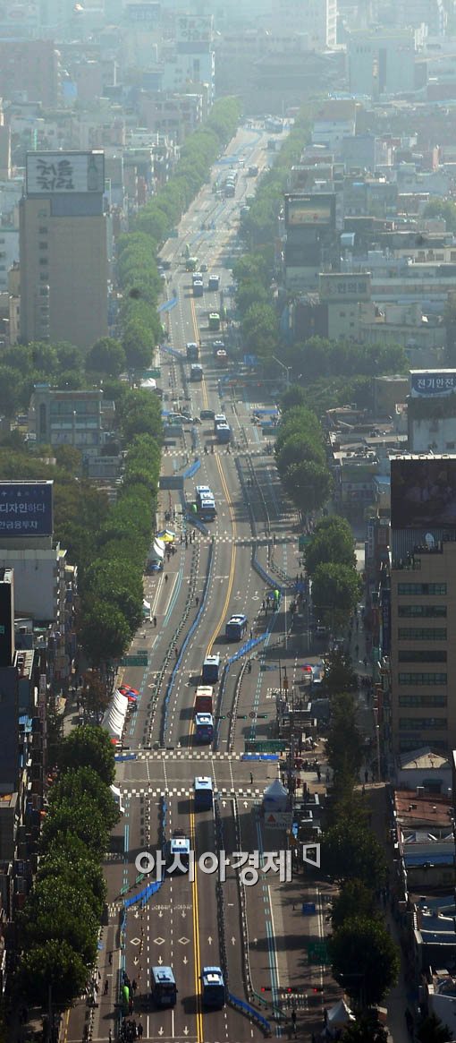 세계 차 없는 날을 맞은 22일 오전 서울 흥인지문에서 부터 광화문 일대가 노선 버스를 제외하곤 차량들이 없어 한산한 모습을 보여주고 있다.