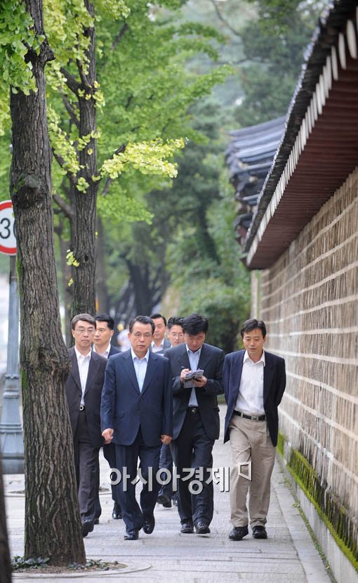 '세계 차 없는 날'을 맞은 22일 오전 한승수 국무총리가 서울 삼청동 총리공관에서 부터 세종로 정부청사까지 걸어서 출근을 하고 있다.