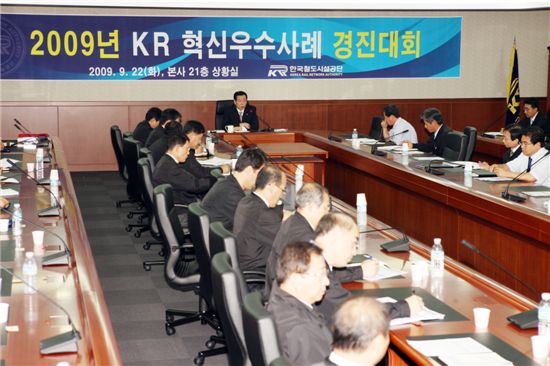 한국철도시설공단(KR)은 22일 대전에 있는 본사 상황실에서 조현용 이사장을 비롯한 임·직원들이 참석한 가운데 ‘2009년 KR 혁신우수사례 경진대회'를 열었다.