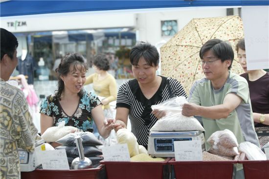 이번 장터에는 이천 제천 삼척 예산 영월 담양 고창 등 성북구와 자매결연 관계에 있는 국내 7개 자치단체가 모두 참가해 특히 관심을 모으고 있다.