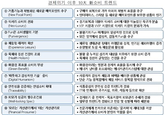 $pos="C";$title="";$txt="경제위기 이후 10大 신(新)소비 트렌드 (자료= 삼성경제연구소)