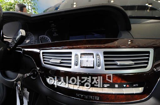 메르세데스-벤츠 코리아는 23일 서울 강남 전시장에서 력셔리 세단 S-Class에 최초로 압축 리튬 이온 배터리를 탑재한 하이브리드 세단 The new S 400 HYBRID L을 출시하고 있다.