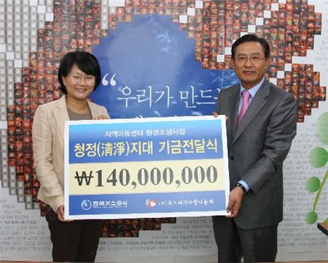 한국가스공사(사장 주강수)는 사단법인 부스러기사랑나눔회와 함께 지역아동센터 환경개선사업을 위해 'KOGAS 청정지대'사업을 전개하기로 하고 나눔회측에 1억4천만원을 사업기금으로 전달했다고 23일 밝혔다.