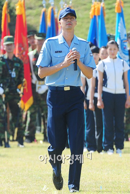 [아시아경제신문 계룡(충남)=이기범 기자]내달 1일 개최되는 '건군 제 61주년 국군의 날 행사'를 위해 24일 오전 충청남도 계룡시 육·해·공군 3군 본부가 있는 계룡대 대연병장에서 배우 조인성이 '국민과 함께 축제 한마당' 코너 예행연습을 하고 있다.