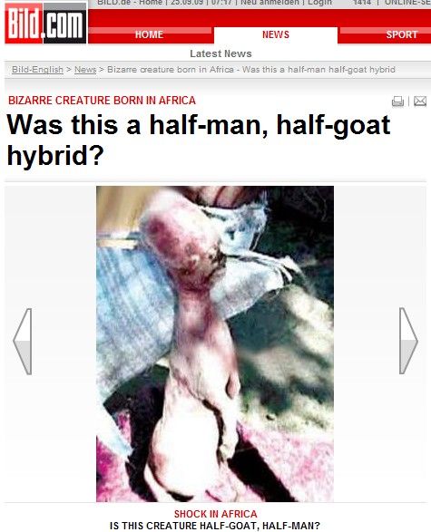 [아시아경제신문 이진수 기자] 아프리카 짐바브웨에서 반은 인간의 모습인 ‘엽기 염소’가 태어나 충격을 주고 있다.