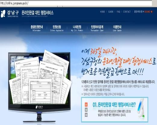 온라인완결 대민 행정서비스는 국가경쟁력강화위원회가 온라인 인프라가 잘 갖추어진 강남구를 시범기관으로 선정하고, 민원업무를 관공서 방문 없이 사무실이나 가정에서 인터넷으로 신청부터 발급까지 편리하게 이용할 수 있도록 개발한 민원처리 시스템이다.