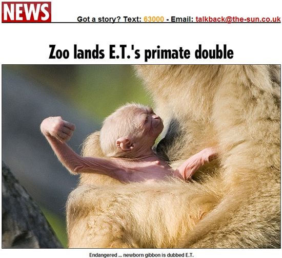 [아시아경제 이진수 기자] 오스트리아 빈의 쇤브룬 동물원에서 요즘 ‘ET’라는 별명을 지닌 갓난 흰손긴팔원숭이가 인기다.