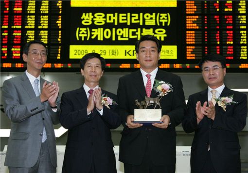 [아시아경제 임선태 기자]$pos="C";$title="상장기념패 전달 후 기념촬영 ";$txt="(사진) 왼쪽부터 권용원 키움증권 대표, 박상조 한국거래소 코스닥시장본부장, 오원석 케이엔더블유 대표, 김홍철 코스닥협회 본부장