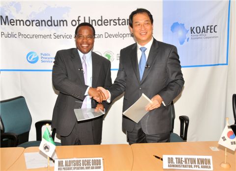 권태균 조달청장은 29일(현지시간) 아프리카 튀니지에서 ▲전자조달 타당성 조사지원 ▲인적자원 개발 ▲세미나 공동개최 등을 뼈대로 한 조달청-아프리카개발은행간 조달분야 업무협조약정(MOU)을 맺었다.