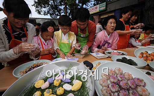 [아시아경제 윤동주 기자] 연휴 마지막 날인 4일 오전 서울 국립민속박물관을 찾은 어린아이들이 부모님과 함께 송편 만드는 법을 배우고 있다.