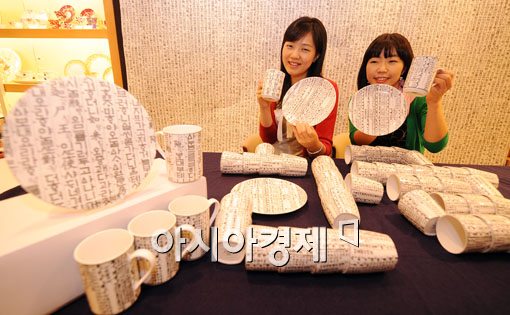 [아시아경제 윤동주 기자] 한국도자기는 4일 서울 소공동 롯데백화점에서 563돌 한글날을 앞두고 '훈민정음 도자기'를 선보여, 모델들이 선보이고 있다.