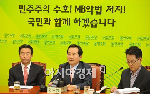[아시아경제 김달중 기자] 정세균 민주당 대표는 5일 국정감사와 관련, "국감은 국감대로 재보선은 재보선대로 언론악법은 언론악법대로 3전 전승을 거두기 위해 최선의 노력을 기울일 것"이라고 밝혔다.