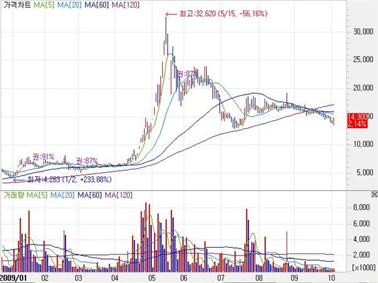이후 주가는 1000원대 중반에서 4790원까지 뛰었다. 주가가 3배가 되는 데 걸린 시간은 불과 20거래일.