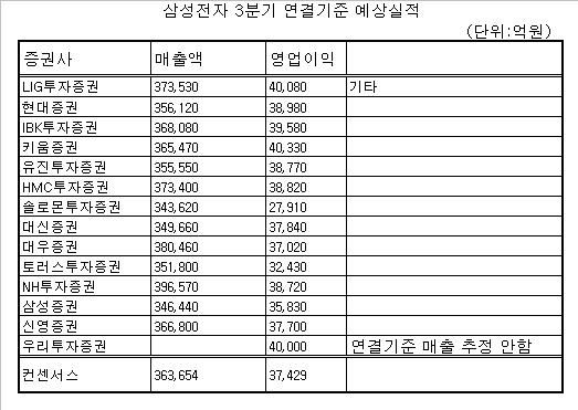 삼성전자의 3분기 실전전망 발표를 하루 앞두고 분기 영업이익 4조원 시대가 열릴 것이란 전망이 힘을 받고 있다. 일각에서는 분기 사상최대 영업이익 기록도 가능할 것이란 분석도 나온다