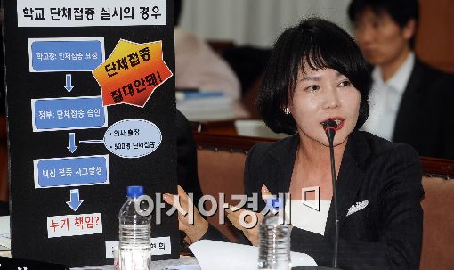[아시아경제 이재문 기자] 전현희 민주당의원이 5일 오전 서울 계동 보건복지가족부에서 열린 국정감사에서 신종플루 백신투약 계획에 대해 질의하고 있다.
