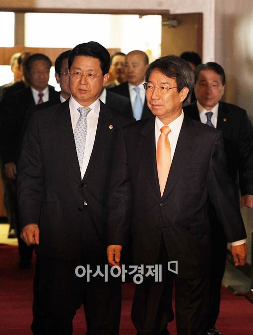 [아시아경제 윤동주 기자] 정운찬 국무총리가 총리 취임이후 첫 국무회의를 주재하기 위해 6일 오전 서울 세종로 정부종합청사 국무회의실로 들어서고 있다.