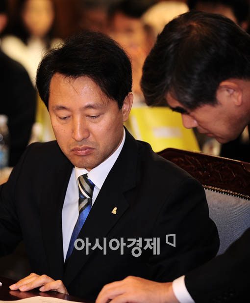 [아시아경제 윤동주 기자] 8일 서울시청사에서 열린 서울시 국정감사에서 오세훈 시장이 시 관계자와 의견을 나누고 있다.