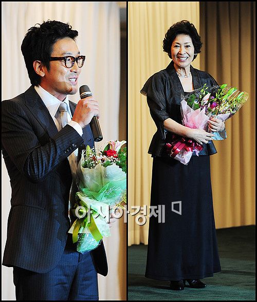 김혜자와 하정우는 9일 오후 5시 제 14회 부산 국제영화제가 열리는 부산 노보텔 앰배서더 호텔에서 열린 10회 부산 영평상에서 남녀주연상을 받았다.