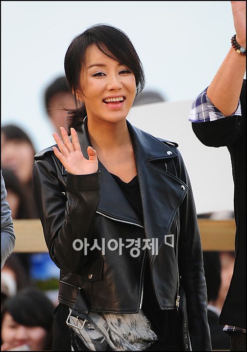 [부산=아시아경제 박성기 기자]배우 엄정화가 9일 오후 4시 '제14회 부산 국제영화제'가 열리는 부산 피프(PIFF)빌리지 야외 무대에서 진행된 '굿다운로드 선포식'에서 손을 흔들고 있다.