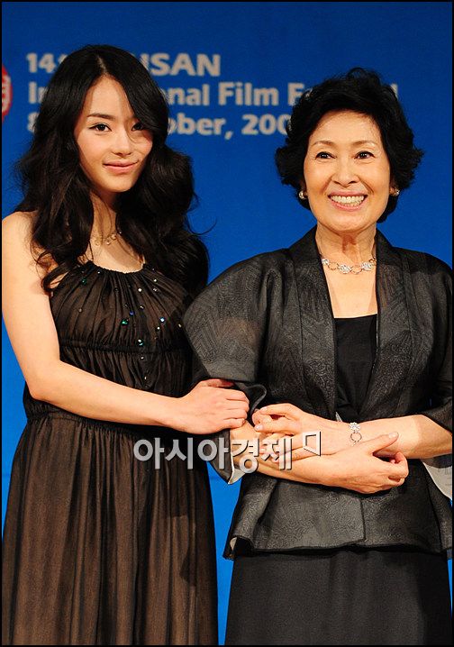 [부산=아시아경제 박성기 기자] 9일 오후 7시 오후 7시 '제 14회 부산 국제영화제'가 열리는 부산 해운대 그랜드호텔에서 진행된 '제 18회 부일 영화상 시상식'에서 배우 서우와 김혜자가 포즈를 취하고 있다.