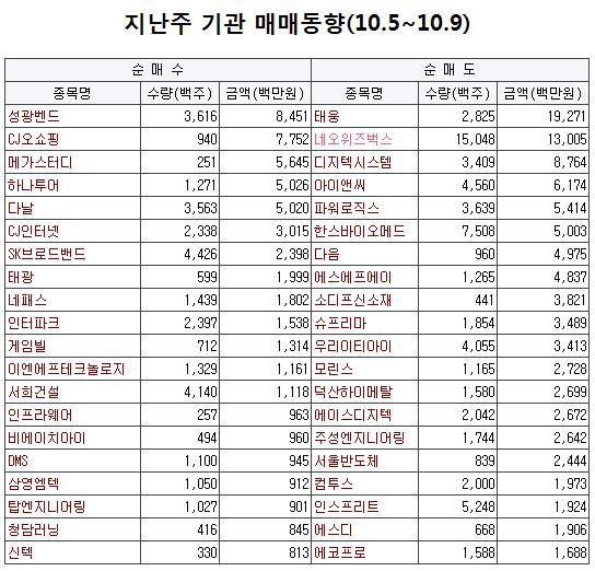 11일 증권업계에 따르면 지난주(10.5~10.9) 외국인은 748억원 순매수를 기록했다. 반면 기관은 632억원 순매도를 기록하며 매도 기조를 유지했다.