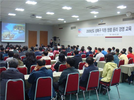성북구는 공무원 직업윤리 함양과 청렴도 일등 구 달성을 위해 오는 23일까지 참가 대상을 바꿔 3차례 더 진행되는 직원 한마음 교육훈련 때마다 이 같은 교육을 실시할 계획이다.