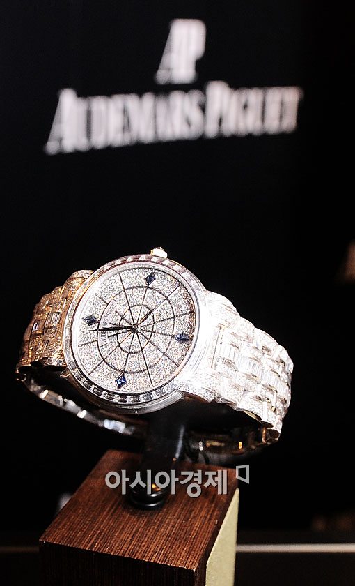 세계 3대 명품 시계 브랜드 중 하나인 '오데마르피게'의 다이아몬드 시계가 전시되고 있다. 다이아몬드30캐롯 정도로 만들어진 이 시계의 가격은 4억1천만원선이다.