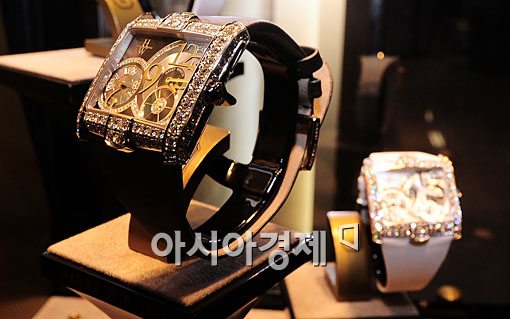 [아시아경제 윤동주 기자] 13일 서울 광장동 워커힐호텔에서 명품 시계전이 열렸다. 세계 명품 시계 브랜드 중 하나인 '해리 윈스턴'의 에비뉴스퀘어 시계가 전시되고 있다.