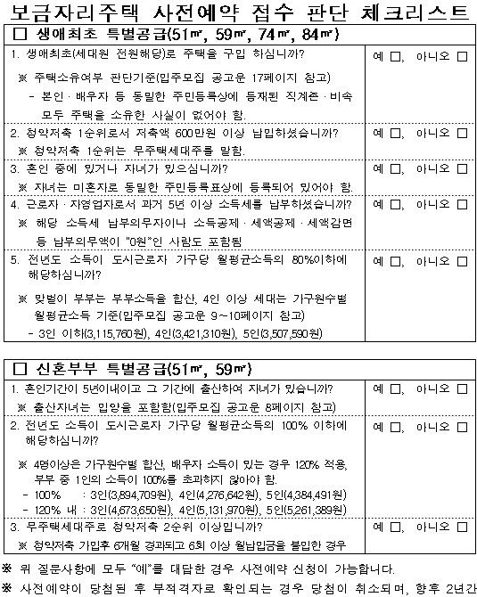 또한 생애최초 주택구입자와 신혼부부 특별공급 청약자를 위한 체크 리스트를 마련해 인터넷 홈페이지에 게재하고 상담실에 비치한다.