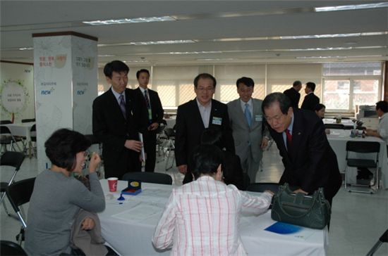 [아시아경제 소민호 기자] 한국토지주택공사(LH) 이지송 사장은 13~14일 이틀간 보금자리주택 3자녀 특별공급을 위한 현장접수처인 LH 서울지역본부와 수원 보금자리주택 홍보관을 찾았다.