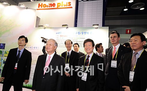 개막식에 참석한 신동빈 롯데그룹 부회장, 손경식 대한상의 회장, 이승한 홈플러스 회장등 주요 인사들이 전시장을 둘려보고 있다.