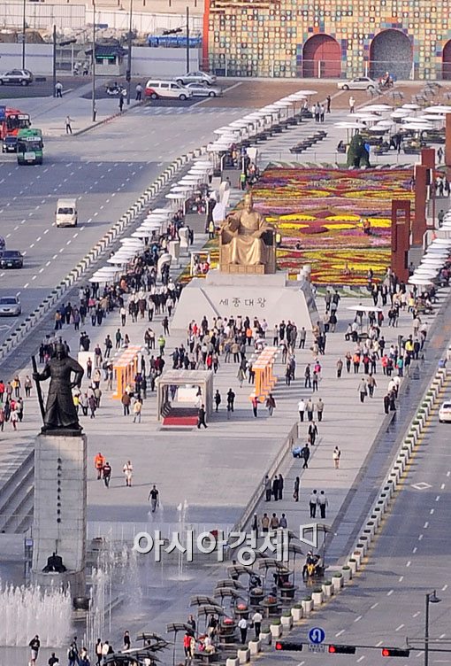 [아시아경제 윤동주 기자] 14일 오후 서울 광화문 광장에 이순신 장군 동상과 지난 9일 한글날을 기념해 세워진 세종대왕 동상에 많은 시민들이 찾고 있다.
