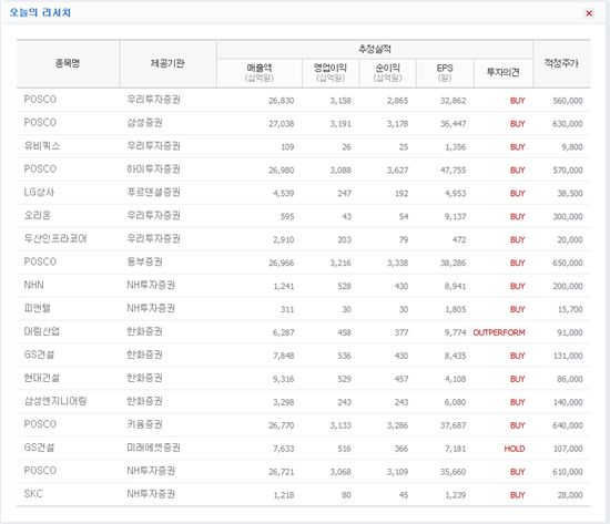 외국계 증권사도 예외는 아니었다. 맥쿼리증권은 포스코의 3분기 실적이 호조세를 보인데 이어 4분기와 내년에는 더 좋을 실적을 낼 것이라며 투자의견을 '시장수익률상회'로 유지하면서 목표주가를 57만원에서 67만원으로 크게 높였다.