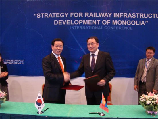 양해각서엔 몽골정부가 중점 추진하는 광산연계철도망 구축과 관련, 두 기관이 공동실무팀을 만들고 작업에 필요한 사무실을 서울과 울란바토르에 서로 제공하는 내용 등을 담고 있다.