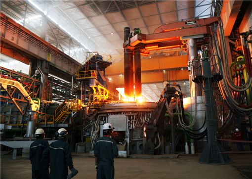 $pos="C";$title="동부제철 전기로";$txt="동부제철이 건설한 전기로가 쇳물을 끓이기 위해 전극봉으로 불꽃을 일으키고 있다.