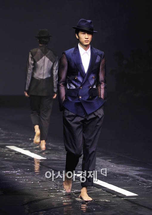 [아시아경제 윤동주 기자] 16일 오후 서울 대치동 SETEC에서 열린 추계 서울패션위크에서 강동준 디자이너의 의상이 소개되고 있다.