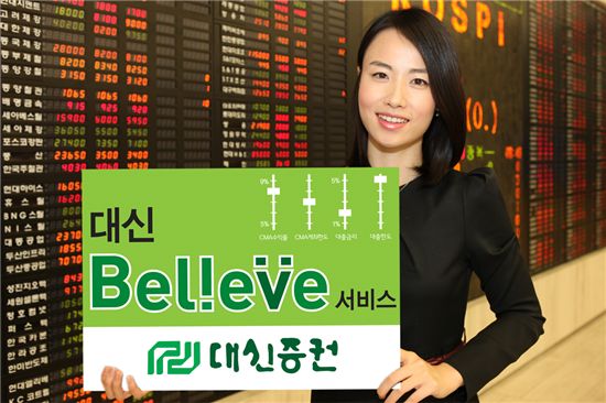 [아시아경제 박선미 기자]대신증권은 19일 '맞춤형 결합금융서비스'인 '빌리브(Believe)'서비스를 개시하고, 그 첫번째로 펀드 가입금액에 따라 최대 9%까지 국공채CMA이자를 받고, 최저 1%이자율로 펀드담보대출을 선택해 받을 수 있는 서비스를 실시한다고 밝혔다.