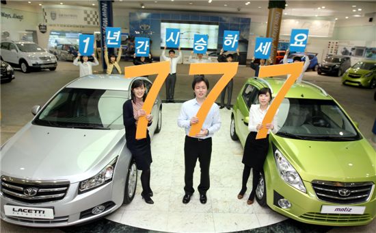19일 GM대우는 회사 출범 7주년을 맞아 총 777명의 고객에게 1년 동안 장기 시승 기회를 제공하는 대규모 고객 만족 시승 이벤트 '스타일 777 캠페인'을 펼친다고 밝혔다.