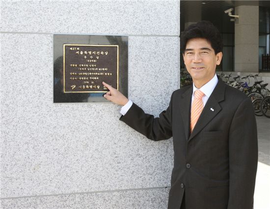 20일 구청사 입구에서 서울시 건축상 우수상 동판 제막식 가져