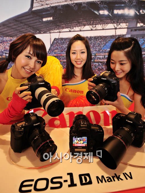 [아시아경제 윤동주 기자] 캐논코리아는 21일 서울 중구 프라자호텔에서 플래그십 EOS-1D Mark IV를 발표, 모델이 직접 촬영 시범을 보이고 있다.