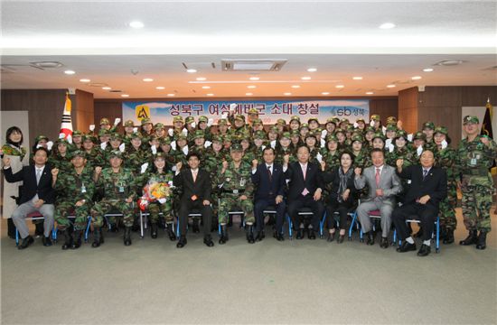 이날 창설식에서 박대섭 육군 제57사단장이 문봉환(52?월곡1동) 성북구 여성예비군 소대장에게 소대기를 수여했으며 서찬교 성북구청장과 정철식 성북구의회 의장 등도 참석해 첫발을 내딛는 여성예비군들을 격려했다.