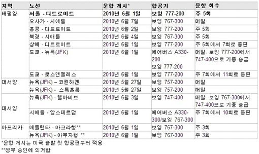 이번 개편은 에어프랑스-KLM과의 합자회사 설립, 알래스카 항공과의 공동 운항 확대 및 노스웨스트 항공과의 합병에 따른 조치다.