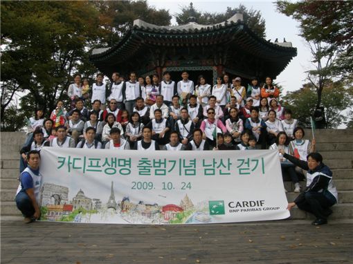 [아시아경제 김양규 기자]최근 사명을 변경한 카디프생명은 성공적인 리브랜딩 행사 완료를 자축하는 의미에서 지난 24일 '카디프생명 출범기념 남산걷기' 행사를 실시했다고 26일 밝혔다.
