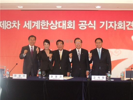 $pos="C";$title="";$txt="26일 재외동포재단과 인천시는 송도컨벤시아에서 기자회견을 열고 27일 개막하는 제8차 세계한상대회를 소개했다. 사진 왼쪽부터 안상수 인천시장, 최영숙 미국 한식당 우래옥 사장, 권영건 재외동포재단 이사장, 고석화 미국 윌셔은행 회장, 고사무엘 미국 필로스 테크놀로지 사장. 사진=김봉수기자";$size="550,412,0";$no="2009102613520901677_1.jpg";@include $libDir . "/image_check.php";?>[아시아경제 김봉수 기자] 전세계에 흩어진 동포 경제인 1300여명이 인천 송도국제도시에 모여 국제 비즈니스계의 '한류'(韓流) 만들기에 나선다.