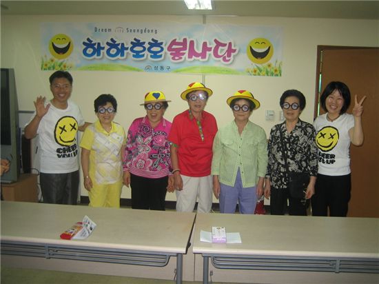 성동구 5~8급 공무원 12명으로 구성된 '하하호호봉사단' 매주 목요일 1시간 복지관 방문 웃음 전달